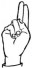 На ћирилици написано ИРИНА БЈЕЛОПЕТРОВИЋ састоји се из 18 слова [?]. Исписано ћириличном једноручном азбуком за глувонеме: